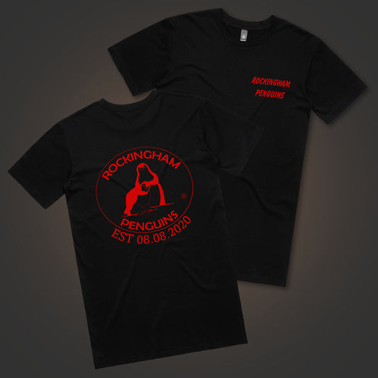 Rockingham Penguins Logo On Both Sides - Black Tee