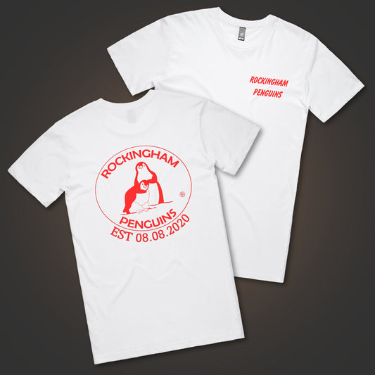 Rockingham Penguins Text and Logo (Double-Sided) - White Tee